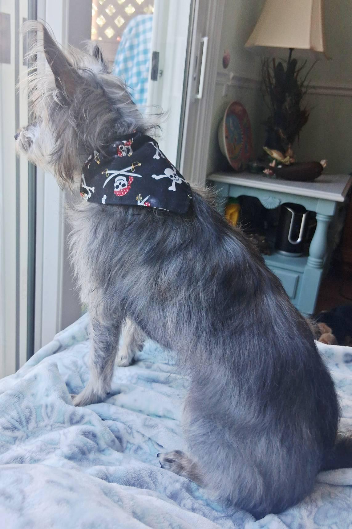 I live in Tampa where we celebrate Gasparilla, the fictional pirate José Gaspar who "stole" the key to the city. It's kind of like our Mardi Gras. I wanted a pirate bandana for my dog, which, surprisingly, was difficult to find. I found it here. I was happily surprised to find it's sewn to enable the dog's collar to go through and secure it. He's worn it a lot these past weeks & will continue to do so for a few weeks as the events continue. I also appreciated the little extras. I highly recommend.