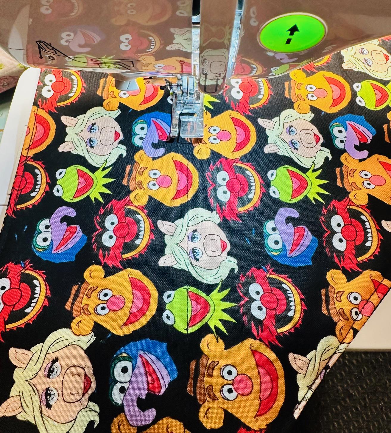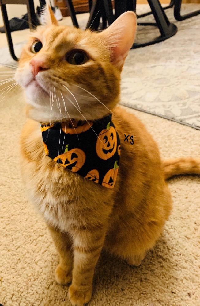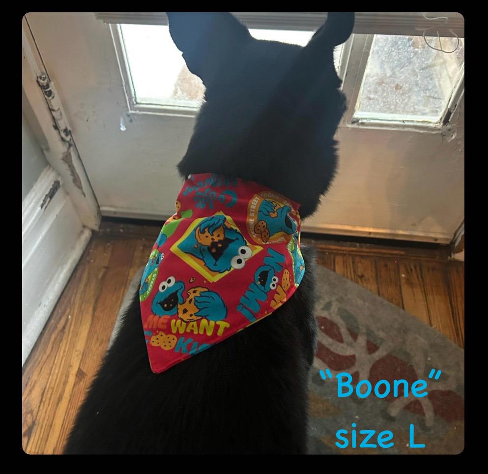 This is a brand new print for us, and these particular characters never last long! We had so much fun making these...they're 100% cotton, quiltshop quality fabrics, sewn with matching thread so the detail really pops. They're also sewn with an extra line at the top of the neck opening to give it a polished finish. We don't attach labels to our bandanas because all we want people to see is your happy furry one! Their collar slides through the top. Allowing the bandana to move freely on their back, or around the front bandit-style, or somewhere in between. It eliminates the chewing or tugging of the tied ends of traditional bandanas.