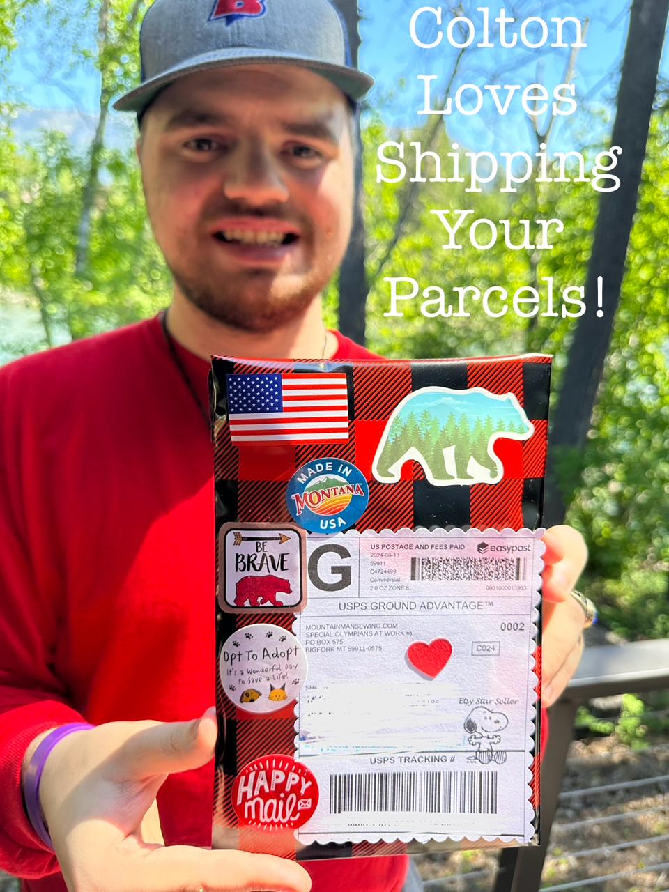 MountainMan Bandanas are touched by Very Special hands...twin young men that are Special Olympic athletes. If you'd like to read more about the fun in our shop, or see pictures of the process, go to www.MountainManSewing.com or Instagram @MountainManSewing406