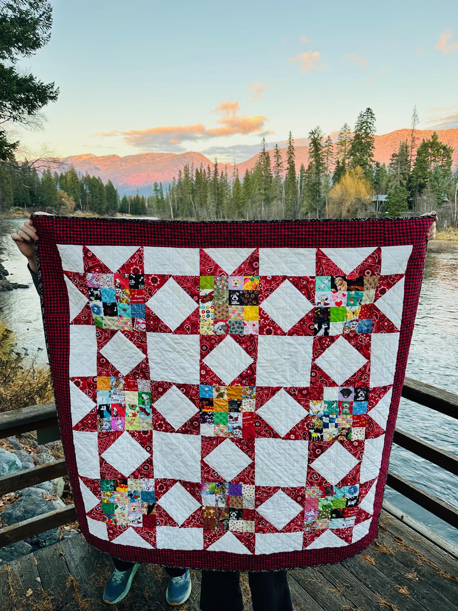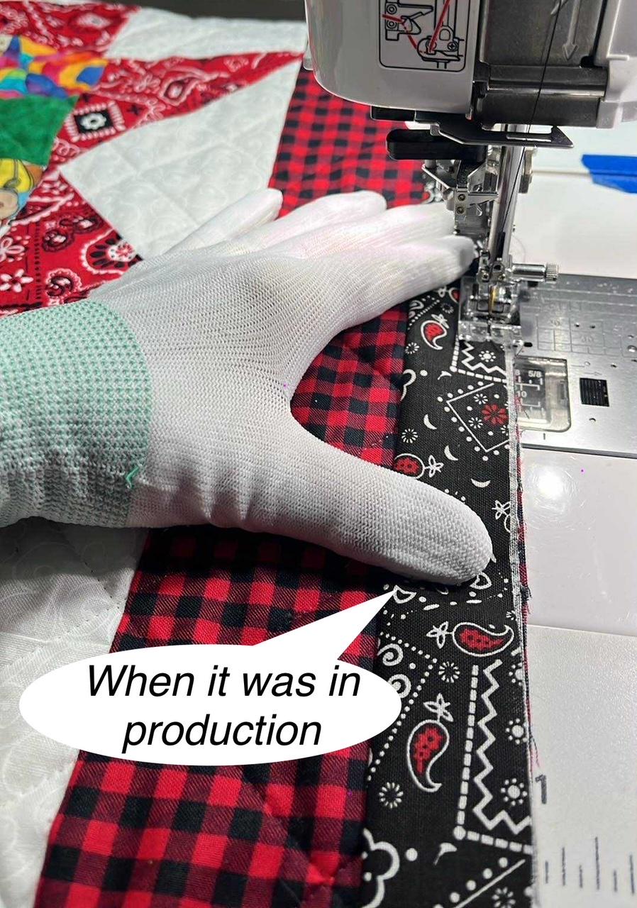 ~ We assemble and sew our quilts like Grandma used to make em. With real sewing machines, using our own creativity and math! 100% hands-on, requiring our full attention. We don't take our quilt tops to "someone else" to finish, nor do we use a high-tech longarm machine for cookie cutter results. Every single one of our quilts is as individual as the Lucky Recipient will be. No two could ever be alike even if we wanted them to. We take the highest pride in our Textile Artistry and Color Harmony.