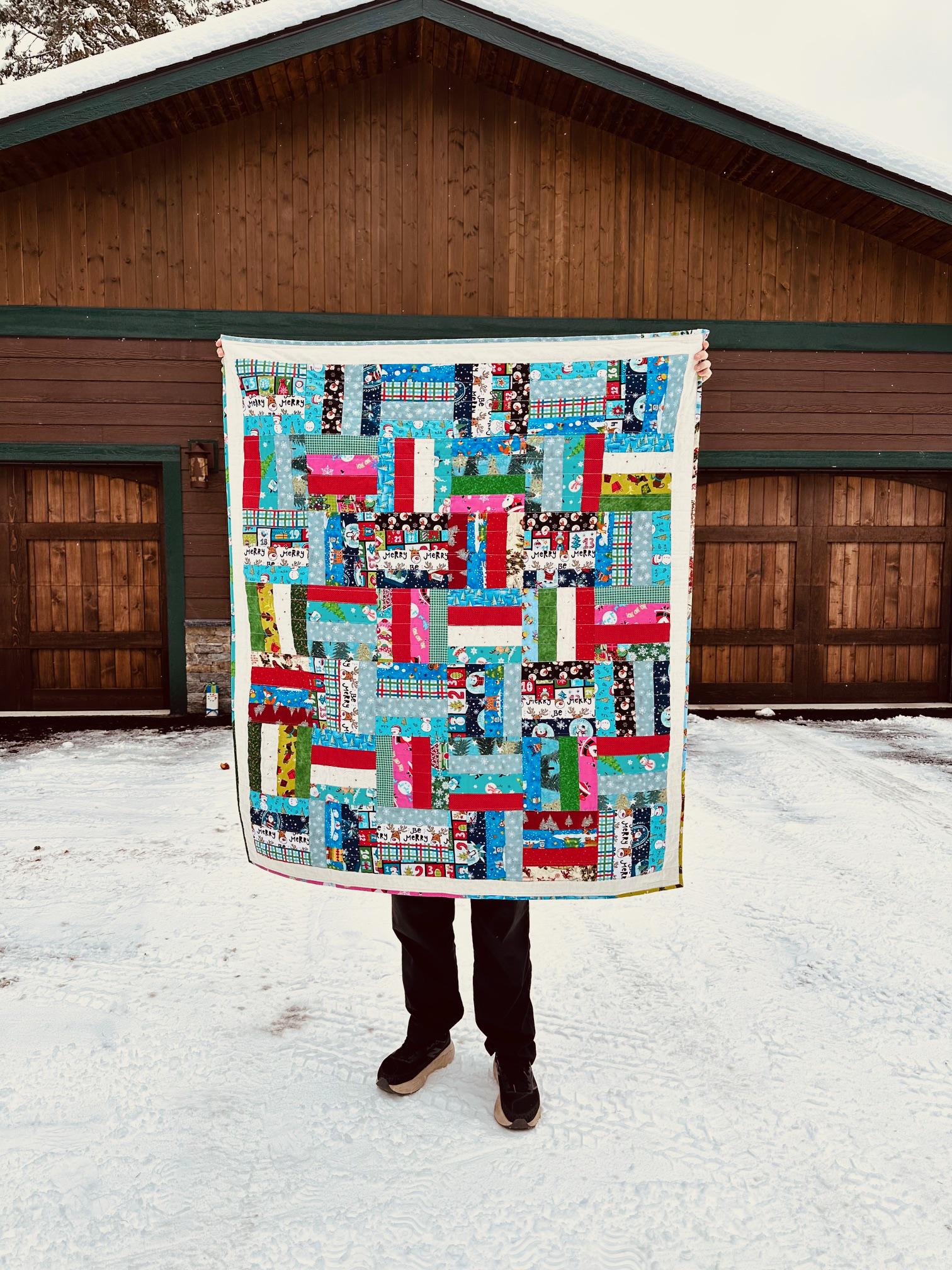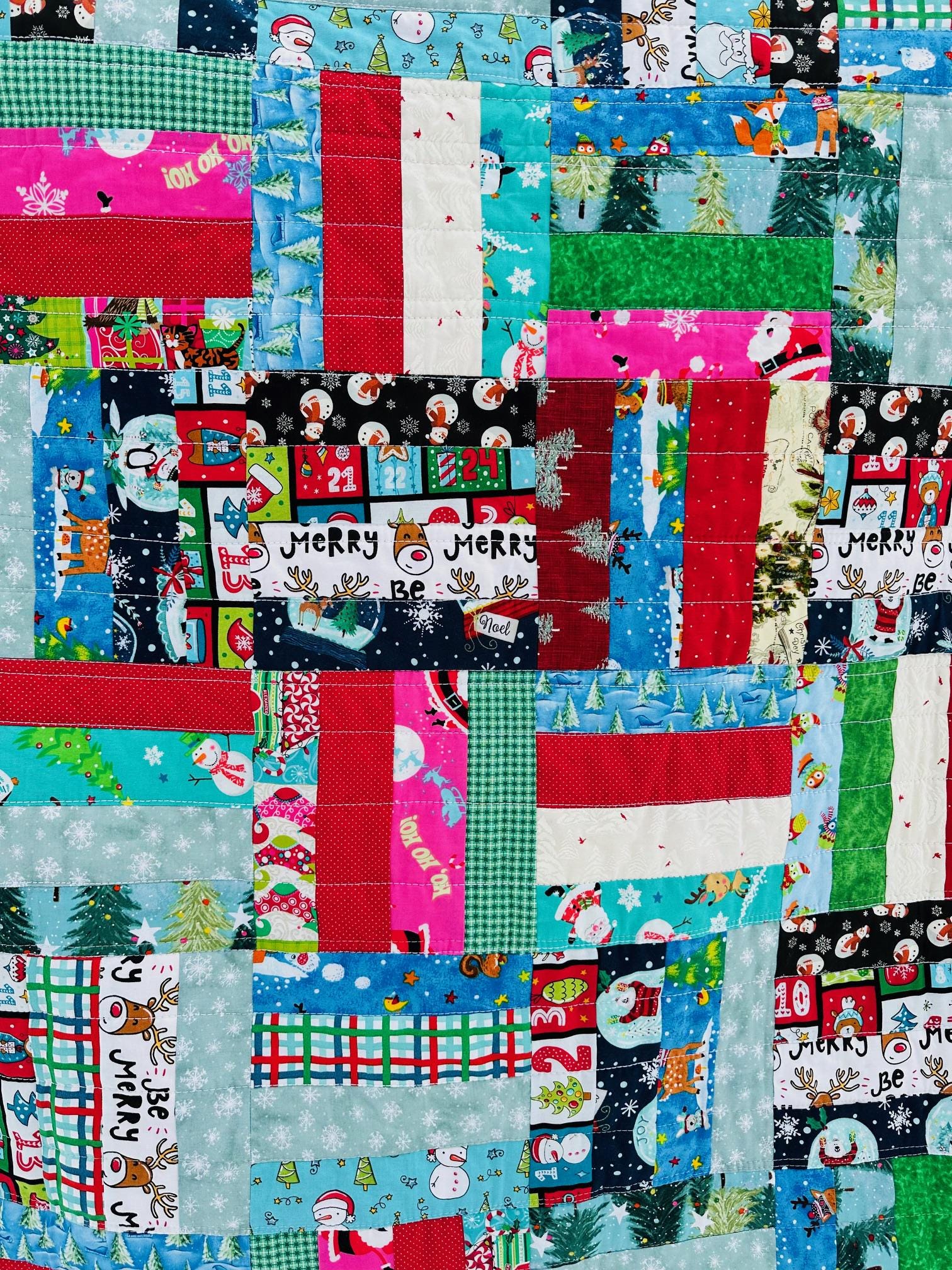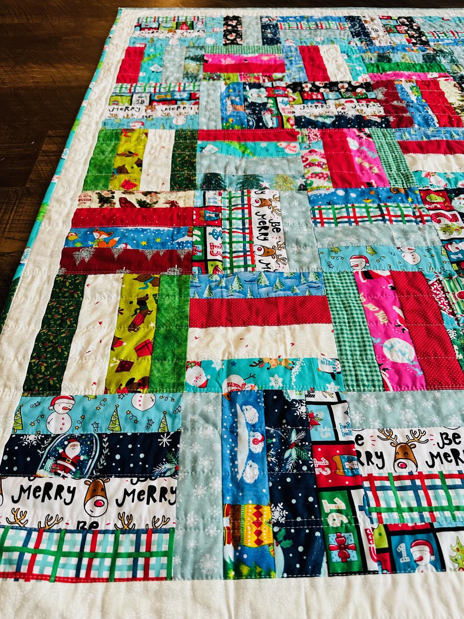 Snuggle Ready! Our holiday quilts are flying out the door! This fresh listing features the vintage Quilt-Block style "Rail Fence," mimicking the rails of old time farm & ranch fencing. We carefully planned the positioning by turning every other block, and it's made from our most popular fabrics of Happy Christmas themes. The reverse side is a buttery soft, red marbled flannel. With same day processing, and shipping straight from Bigfork Montana, this beauty is ready to leave our cozy Ranch Studio that's covered in a fresh layer of snow (we're less than an hour south of Glacier National Park). Many of our customers use our creations for their photo backdrops or social media layouts. You'll receive it in gift-presentation at no extra charge. Made with care and love, in a non-smoking home with joyful mojo. It matters!