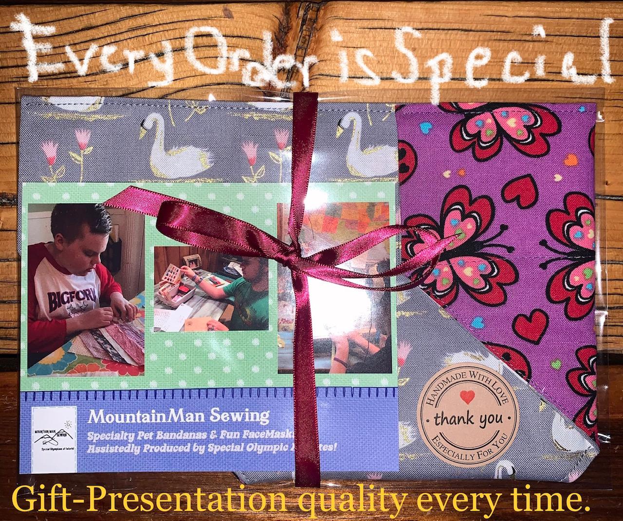 You won't find a label on our Pet Bandanas because we want all the attention to be on your sweet fur-baby. Every order receives a handwritten customer note, individually written to You, by Gold Medalist Runner Curt. (Any info you'd like to share about your pet will probably be mentioned in your note!) Your parcel will be hand-delivered to our local postal counter by Colton, a Gold Medalist Slalom Skier, who is the keeper of the mailbag and mailkey. Besides being Colton's absolute favorite place to go, delivering your items to the postal counter keeps Us in control of your items until the very last moment. Which protects them from extra handling until they're officially on the way to you...rather than sitting in a receptacle somewhere awaiting processing.