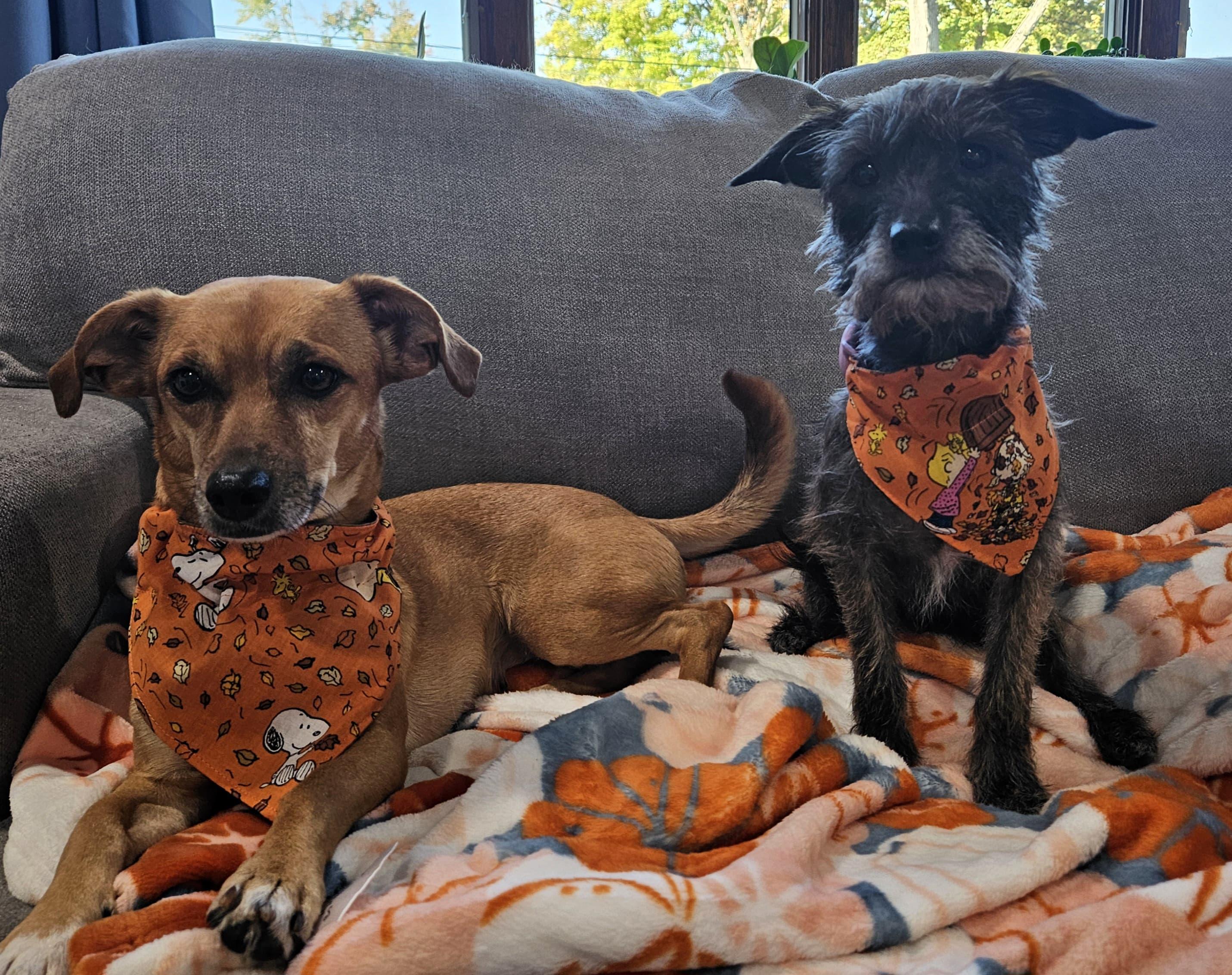 Pur newly adopted girls just loved their matching bandanas and we will certainly order again. They are getting many complements on the walks!